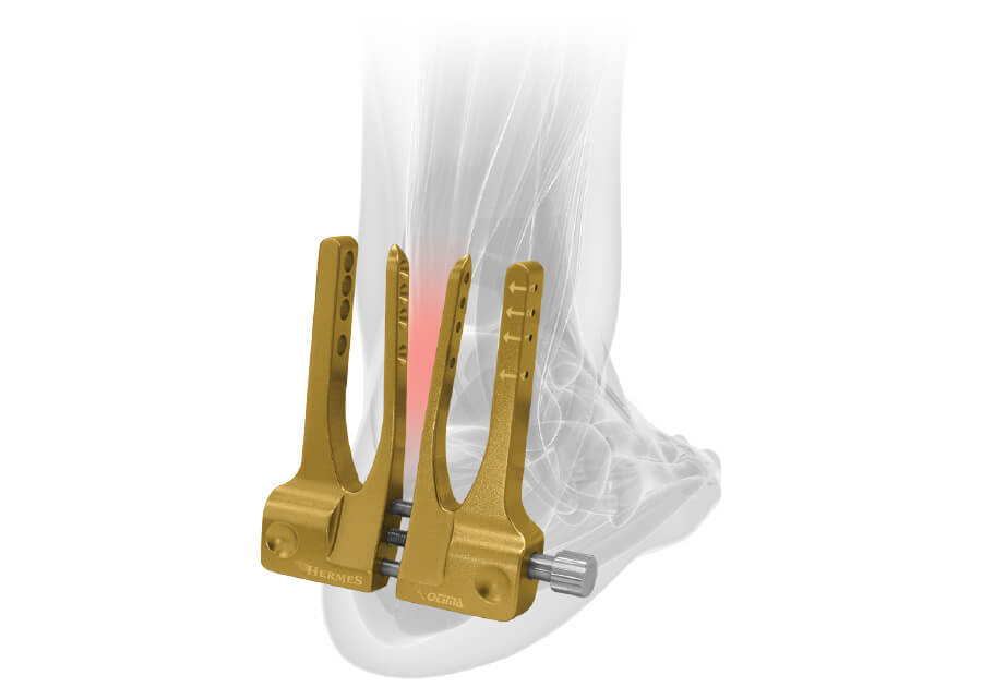 Sistema ampliado MIS para reparo e sutura de tendão de Aquiles.